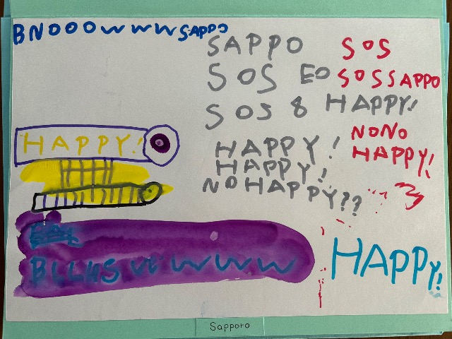 SOS アンハッピーと花火や楽しいことを表現しました。