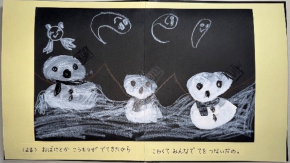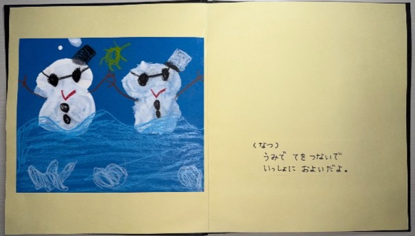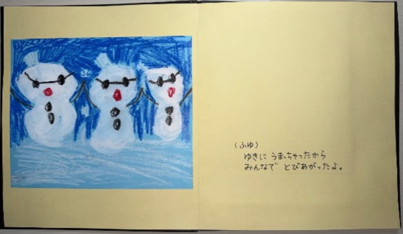 雪だるまが、いろんな季節で楽しかったりびっくりしたり、怖かった気持ちを絵本にしたよ。