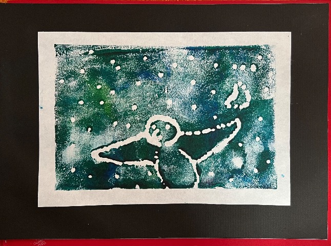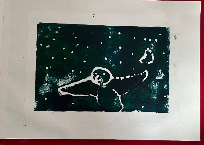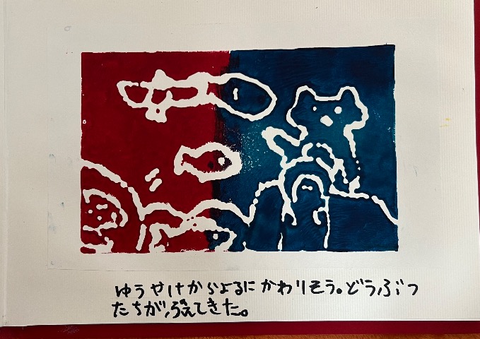 版画作品です。 主人公のとりさんと一緒に旅をしてる様に感じられます。 空が変わっていくところが見どころです。