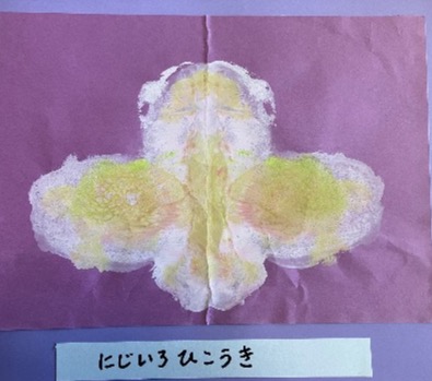 にじいろひこうきをおりたたんだところをくふうしました。