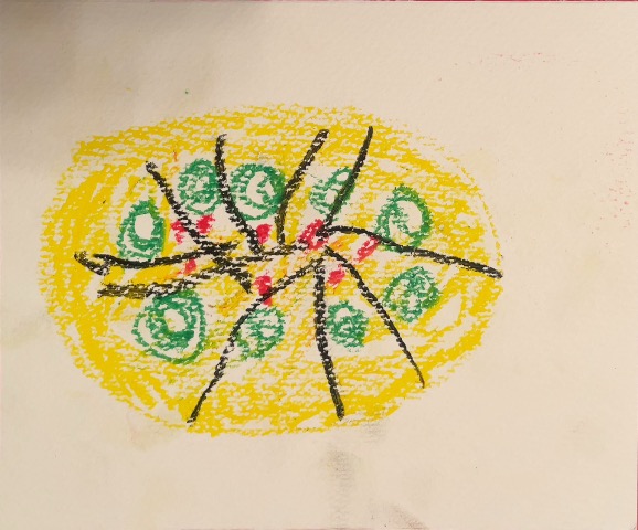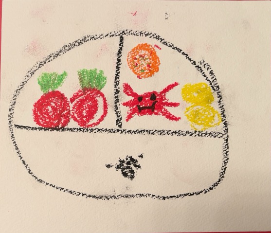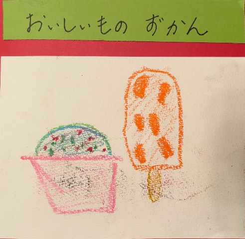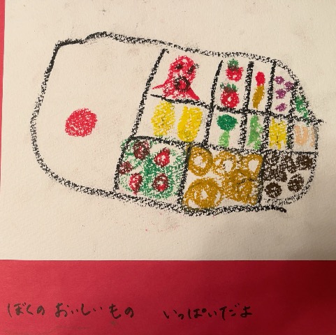 ぼくのすきなおいしいものをたくさんかきました。またたべられたらいいな。