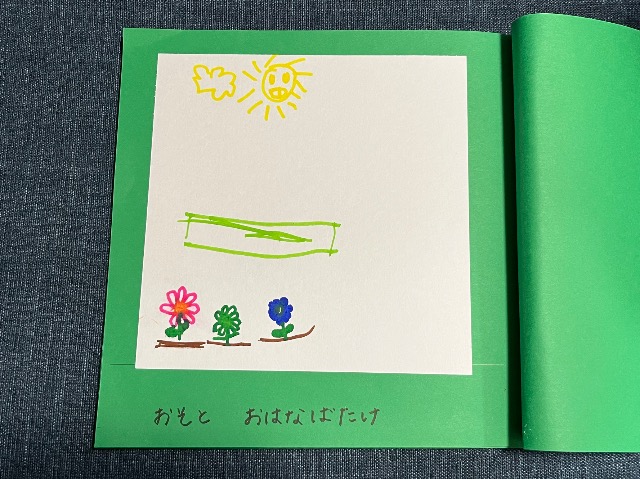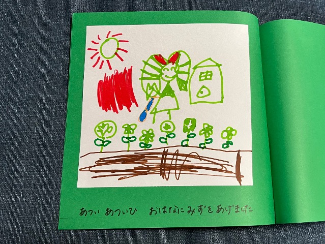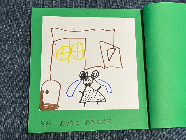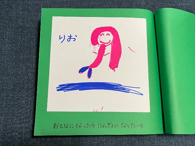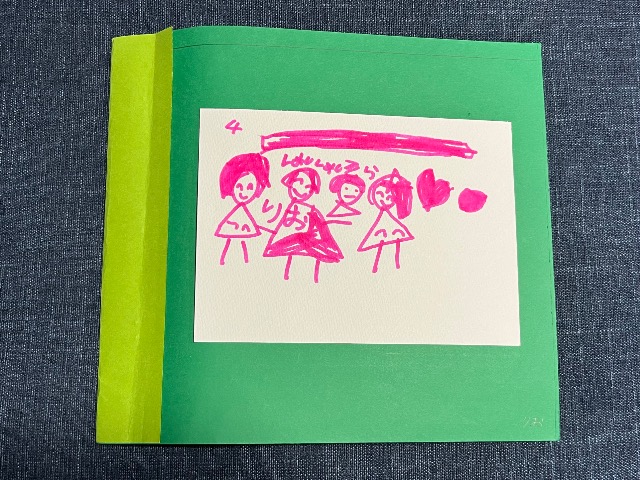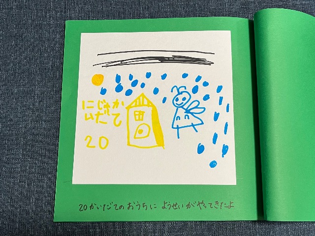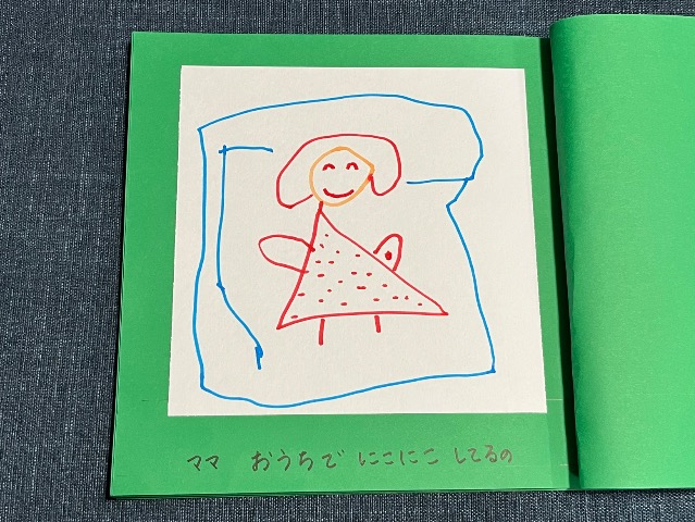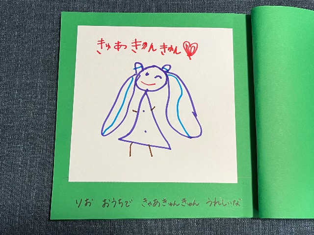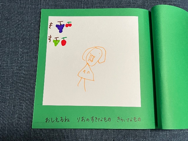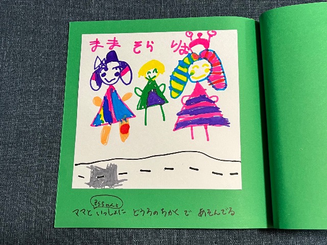 娘の好きなものをがたくさん出てくるお話です(^^) 裏表紙には家族4人かわいく描いてくれました♪