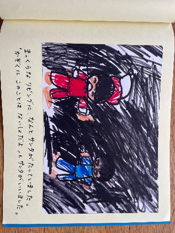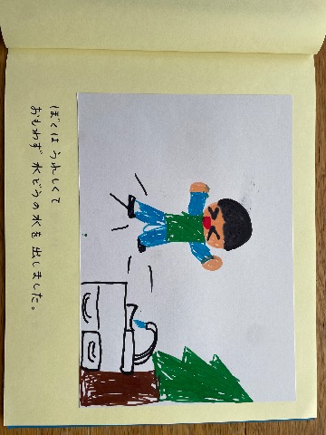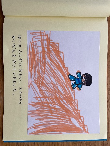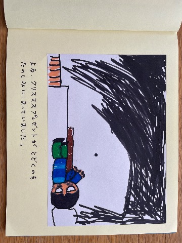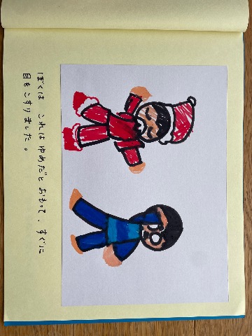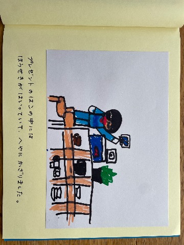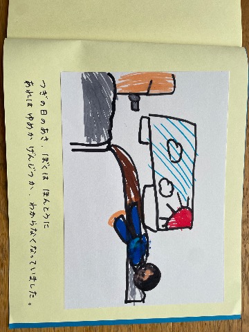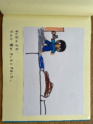はじめてえほんをかきました。 ペンでかくことがむずかしかったけど、じぶんがかんがえたおはなしがえほんになってうれしいです。 ほんとうのできごとになったらたのしいのにな、とおもいます。