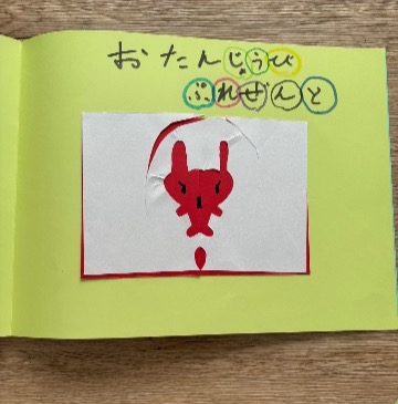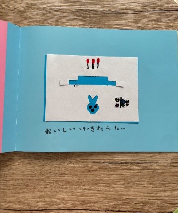 きょうは、うさぎさんのたんじょうび★ どんなたんじょうびケーキかなあ。 どんなプレゼントかなあ。 おたのしみに☆