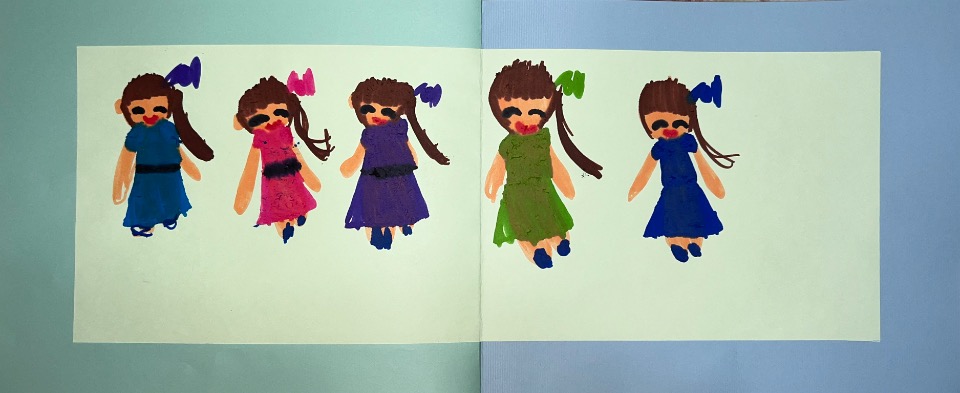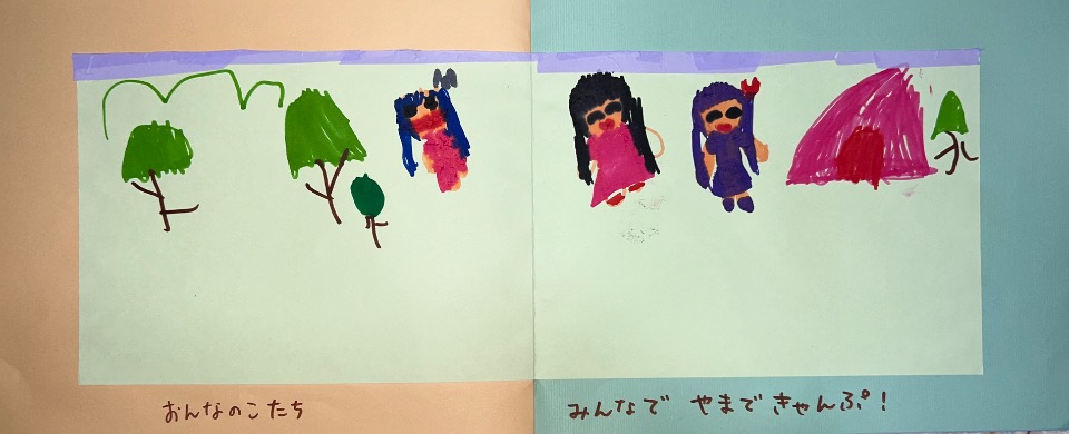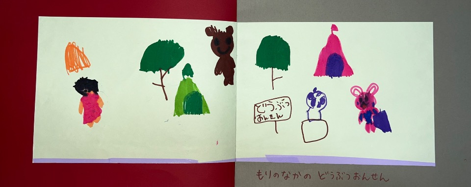 カラフルなマーカーペンを使って描いた絵本です。可愛い女の子や動物達のお話しです。