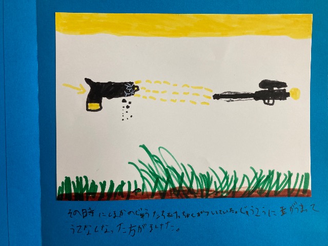 手にあせにぎるかっこいいじゅうたちのたたかいです。