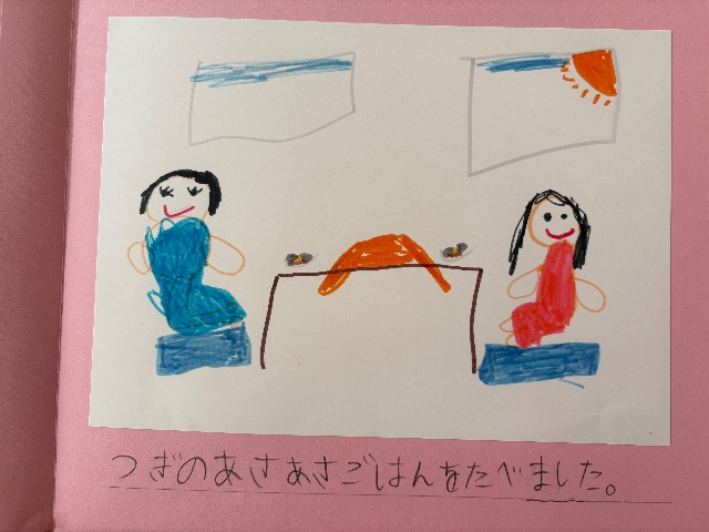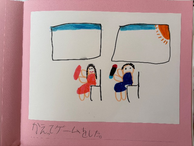 仲良し家族の日常を描きました。お兄ちゃんとはけんかばかりだけれど、やっぱり大好き。2人で遊ぶシーンも描きました。