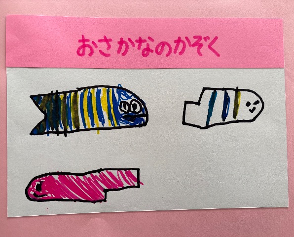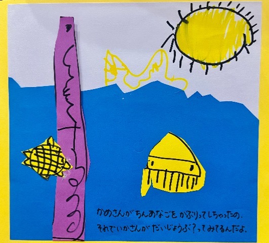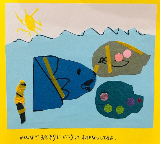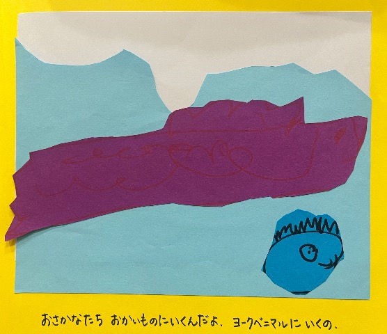 いろいろなうみのいきもののおはなしをつくりました。ぼくがママとよくいくスーパーのなまえもでてきます。