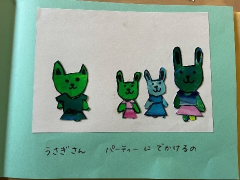 ねこやうさぎとお散歩しながらパーティーに行くお話です。みんなニコニコ楽しく過ごしてる様子を表現しました。