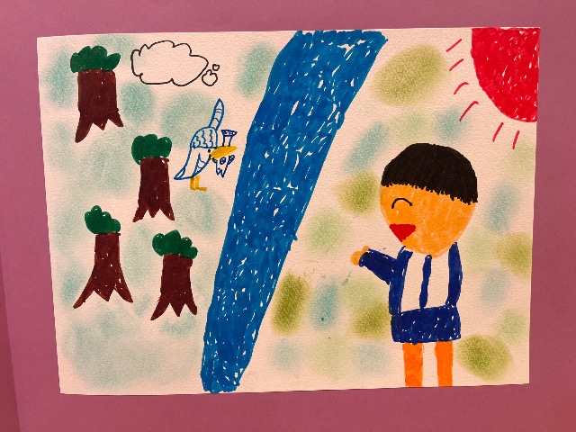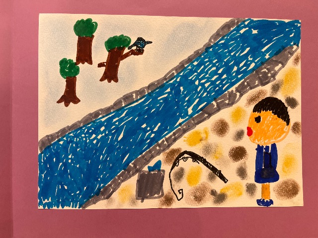 綺麗な色をしているカワセミは僕が大好きな鳥です。大好きなカワセミが出てくる、優しいお話しを描きました。