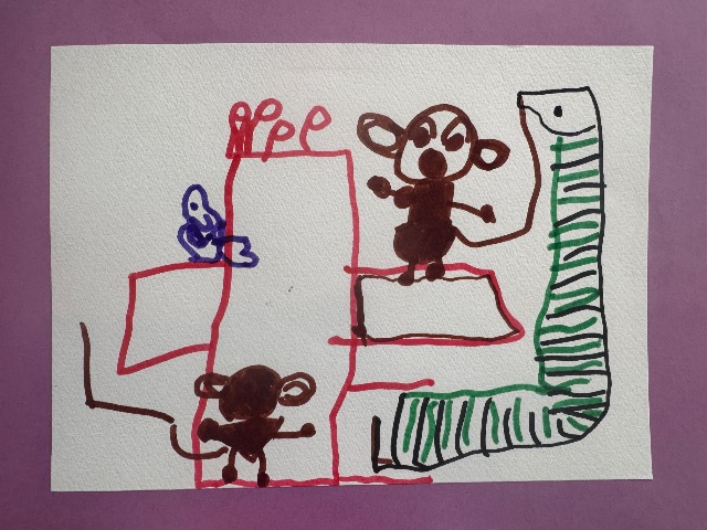 幼児コースとして最後の参加でしたが、かわいらしい子どもの絵がとても素敵で貴重です。