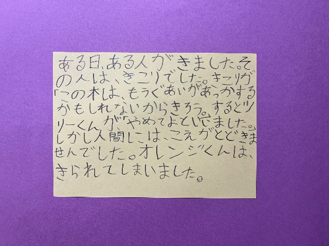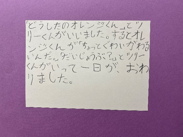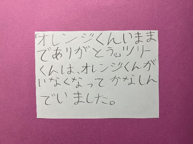 ツリーくんとオレンジくんの友情が感じられたり、急な展開を楽しむことができる絵本です! お友達への大切さが伝わる絵本でした! ステキな色使いで、見てて元気になる絵本です!