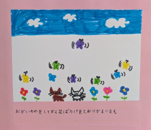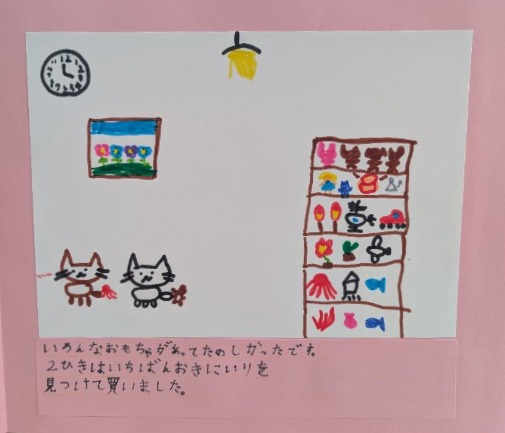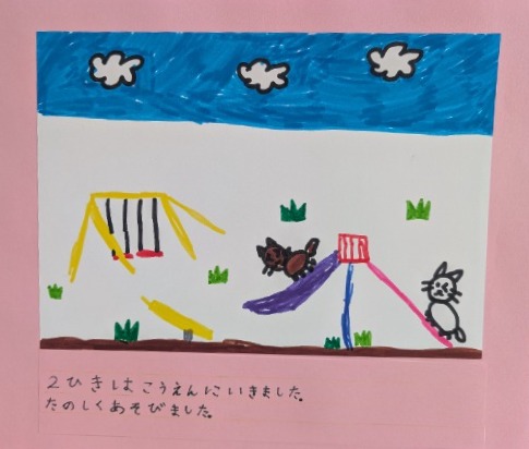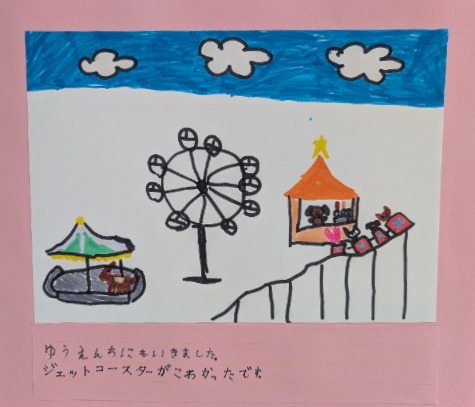 だいすきなねこのお話しです。 ゆうえんちの絵をがんばって描きました。 ねこたちがいろいろなところへおでかけするおはなしです。 楽しんでよんでもらえたらうれしいです。