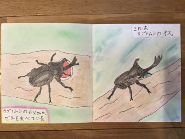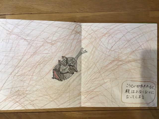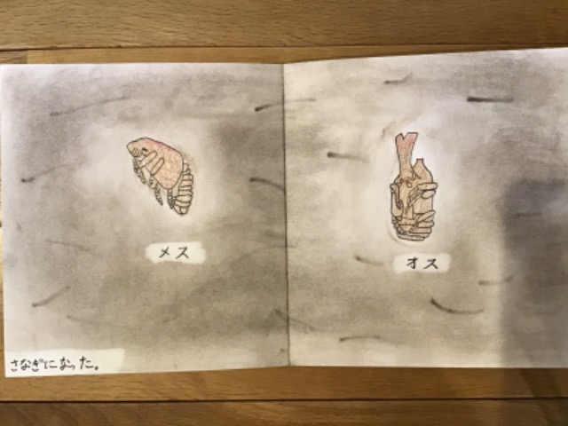 一番最後のページで、オスとメスがまた出会うようにがんばりました。
