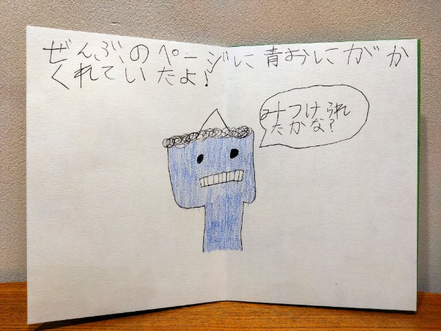 主役はバイソンだけど、青おにがかくれてるよ。みつけてね。