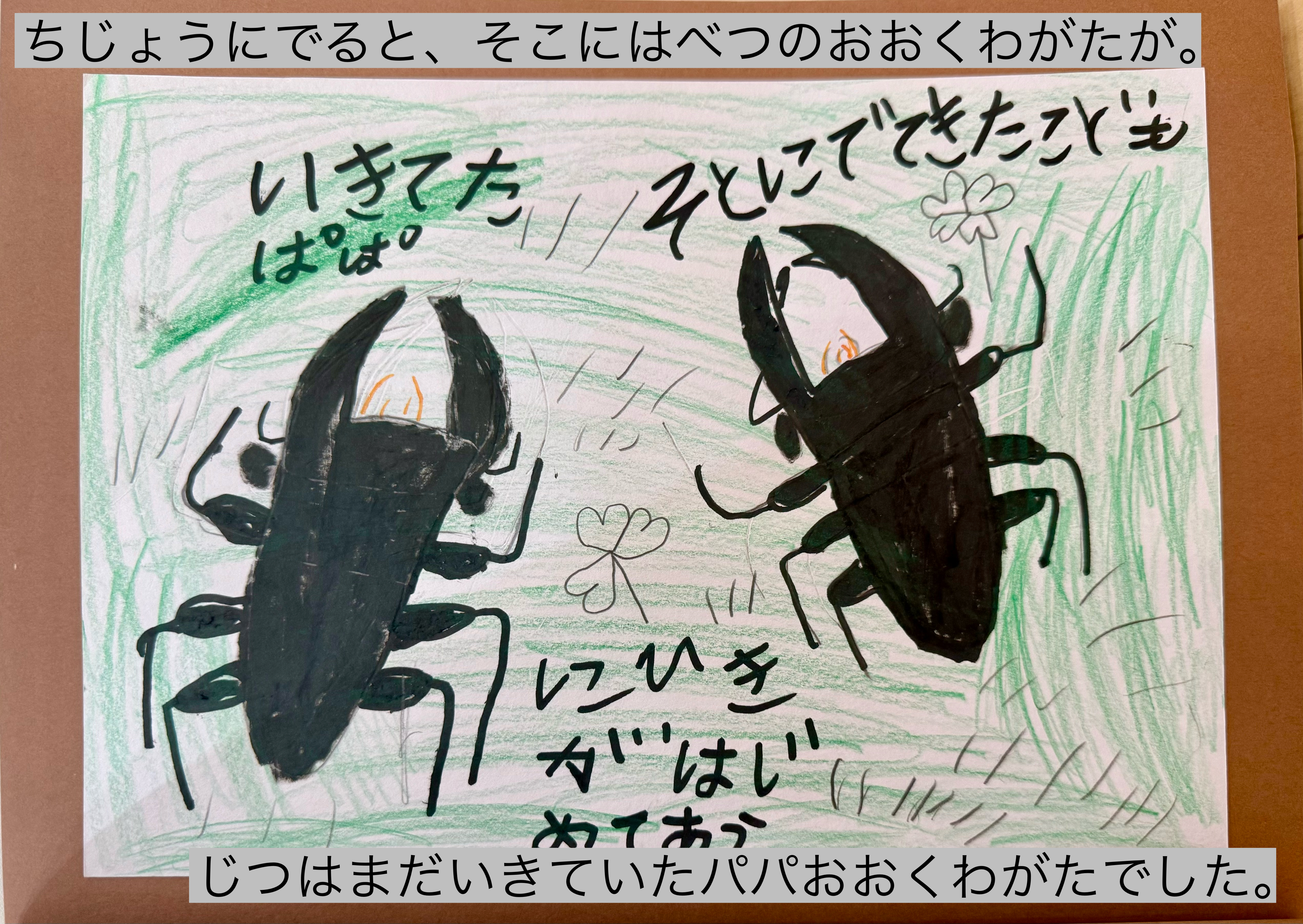 だいすきなおおくわがたのおはなしをかんがえました。
