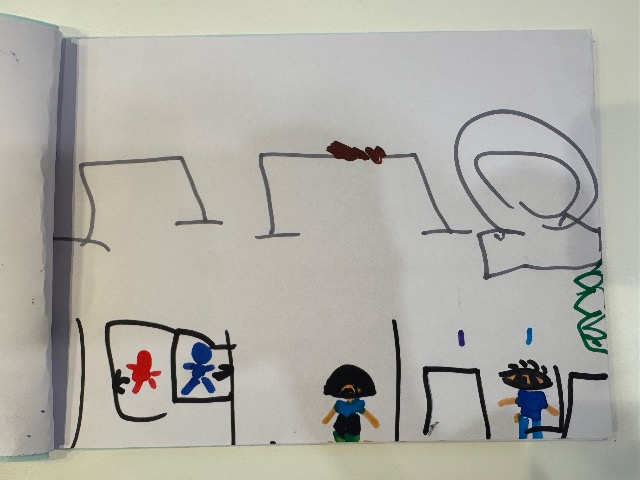 幼稚園のお友達とおでかけをして楽しかった思い出を絵本にしました。