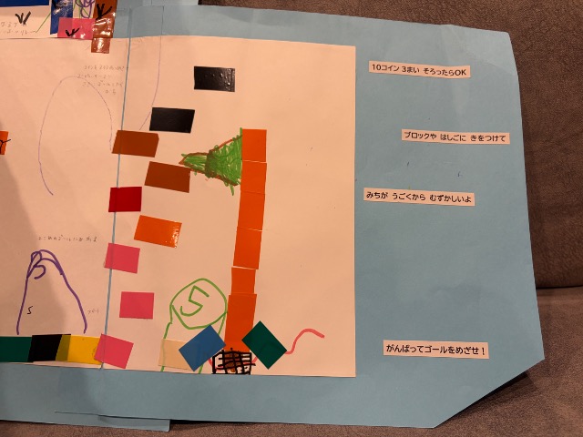 マリオが好きなともくん。 大きなキャンパスに自分でコースを描いたようです。