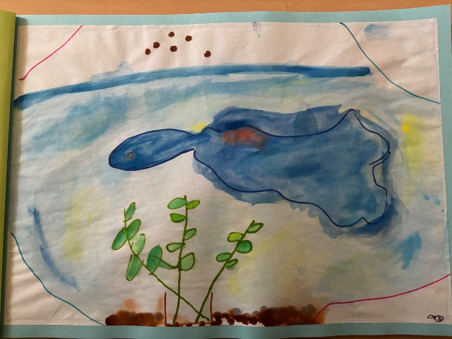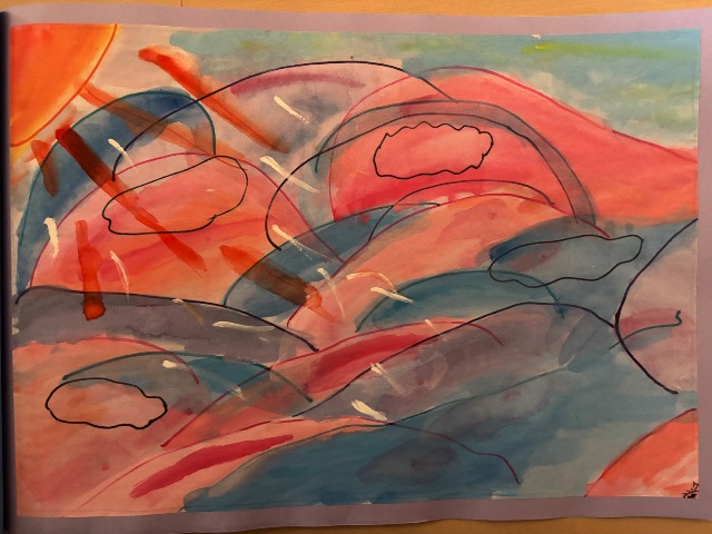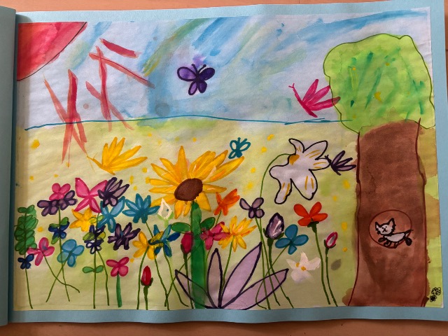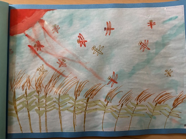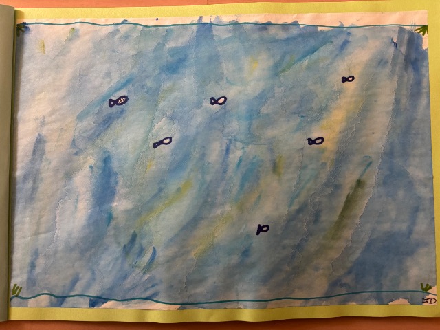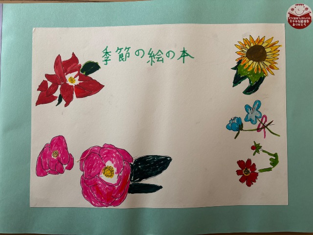 ペンや絵の具、絵の具のにじみで本を作りました。