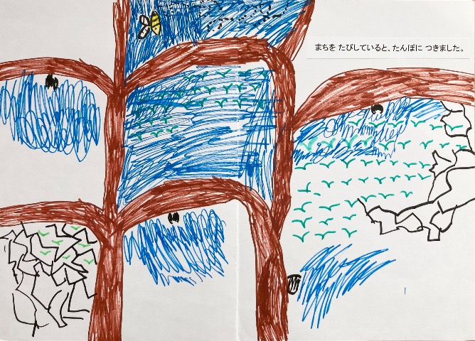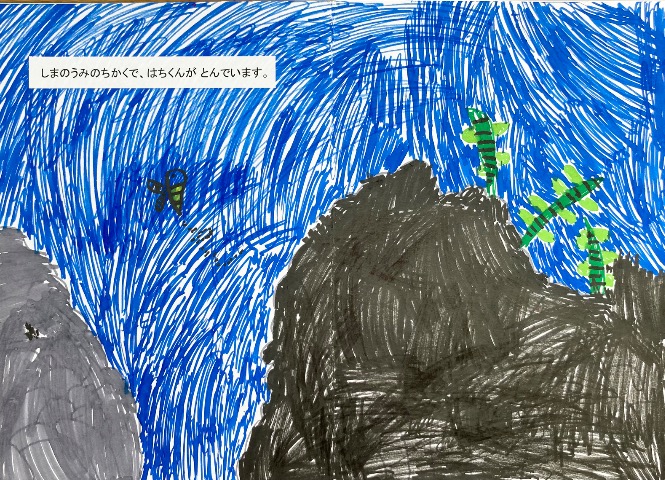 はちくんがいろんなところを冒険する物語です。 山、海、街など、様々な場所の美しい景色が表現されています。
