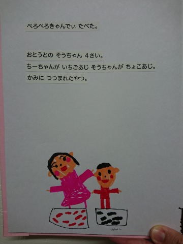 家族や動物の表情であったり色彩を細かく分けている所を見て欲しいです。 文章は大人の手を借りず本人のみで考えたそうです。