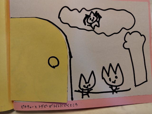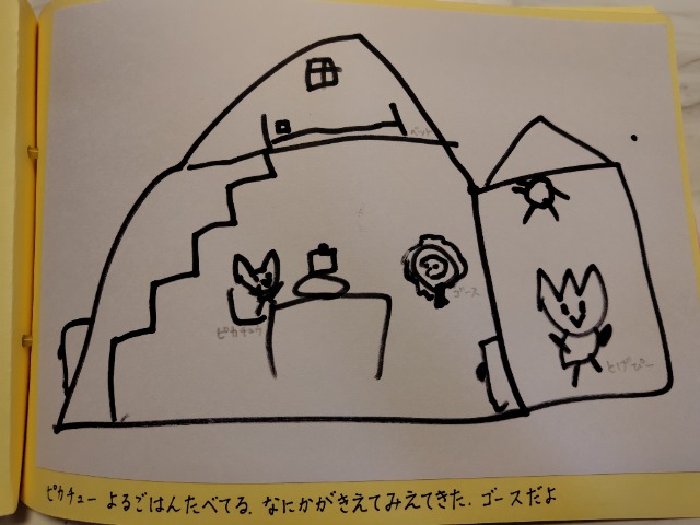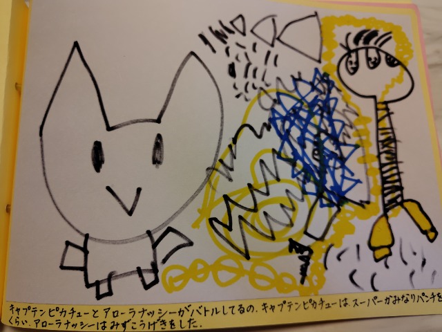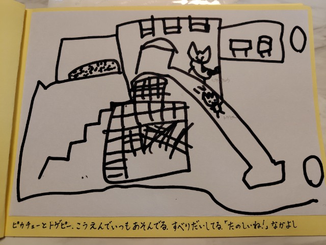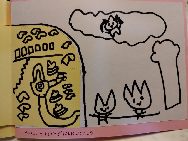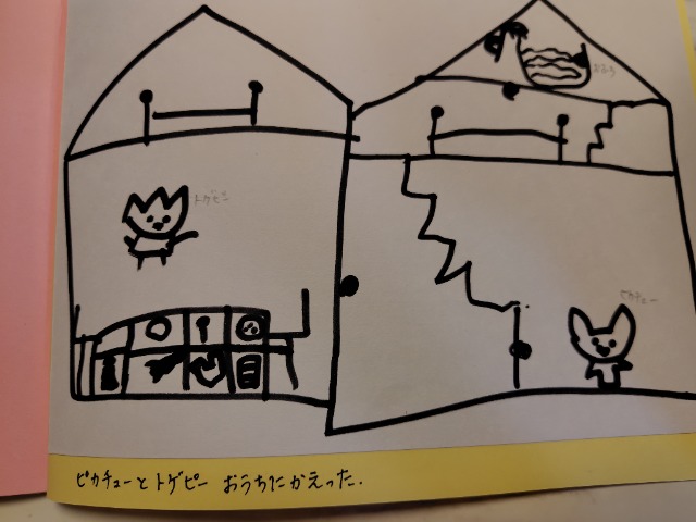 いっぱいおやすみしたけど、たくさんかけた。できてよかった。がんばった。トイレにいくところがおもしろくかけた。