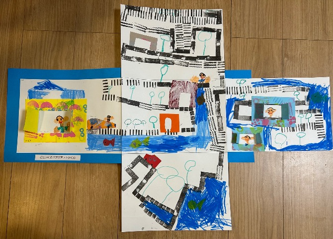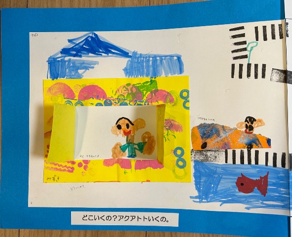 初めてのお話作りにチャレンジしました。遠足で行った思い出を題材にしました。お友達も描きました。